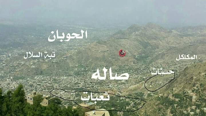 يظهر في الصور الخاصة موقع المكلكل بالإضافة الي قصر الامام في صالة بالإضافة الي تبة السلال التي مازالت تحت سيطرت المليشيات ولكن مدى اقتراب قوات الجيش والمقاومة منها تؤكد انها ستكون الهدف القادم لهم ..